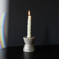 Display sculpted taper candles in style with this natural marble taper candle holder. The organic, warm, beige marble contrasts nicely with its modern shape. A great standalone piece, or style in multiples for a centerpiece or mantel display.