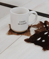 Snuggle up with a cozy cup of joe in this Cozy Season Mug! Crafted from durable stoneware, this classic mug will be your go-to for your morning caffeine fix. Put the cozy back in coffee time!