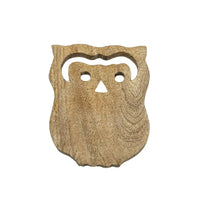 Bring whimsy and warmth to your table with this set of four owl coasters. Crafted from natural wood, each owl-shaped coaster features delicate open carvings around the face, offering a playful yet practical way to protect surfaces while adding rustic charm to entertaining essentials.